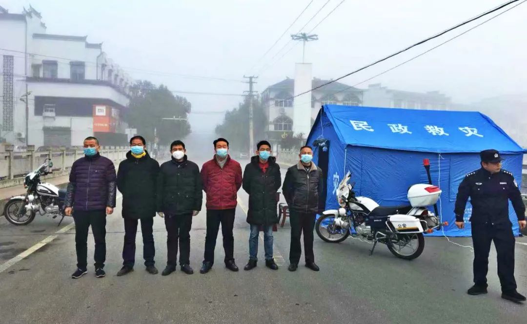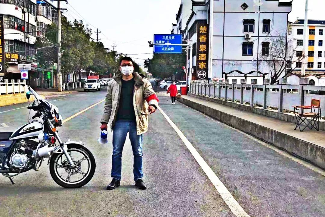 大洪山公司志愿者在疫情防控中杨勇、喻光明、喻光朝、陈军、王东、徐小康、杨海军、邓得银、喻鹏九位同志参与了大洪山区域交通管控,负责镇区5个主要卡口工作,耐心劝导当地居民禁止出行,部分员工在工作中被不能理解的居民抓伤。