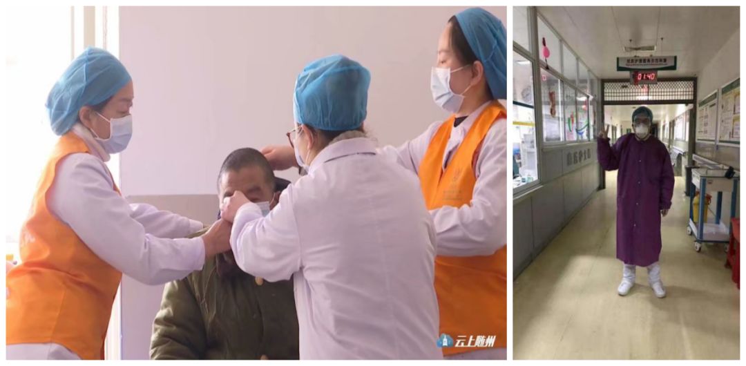 精神科发热留观病区医护团队、感染病区护士帮助患者服药