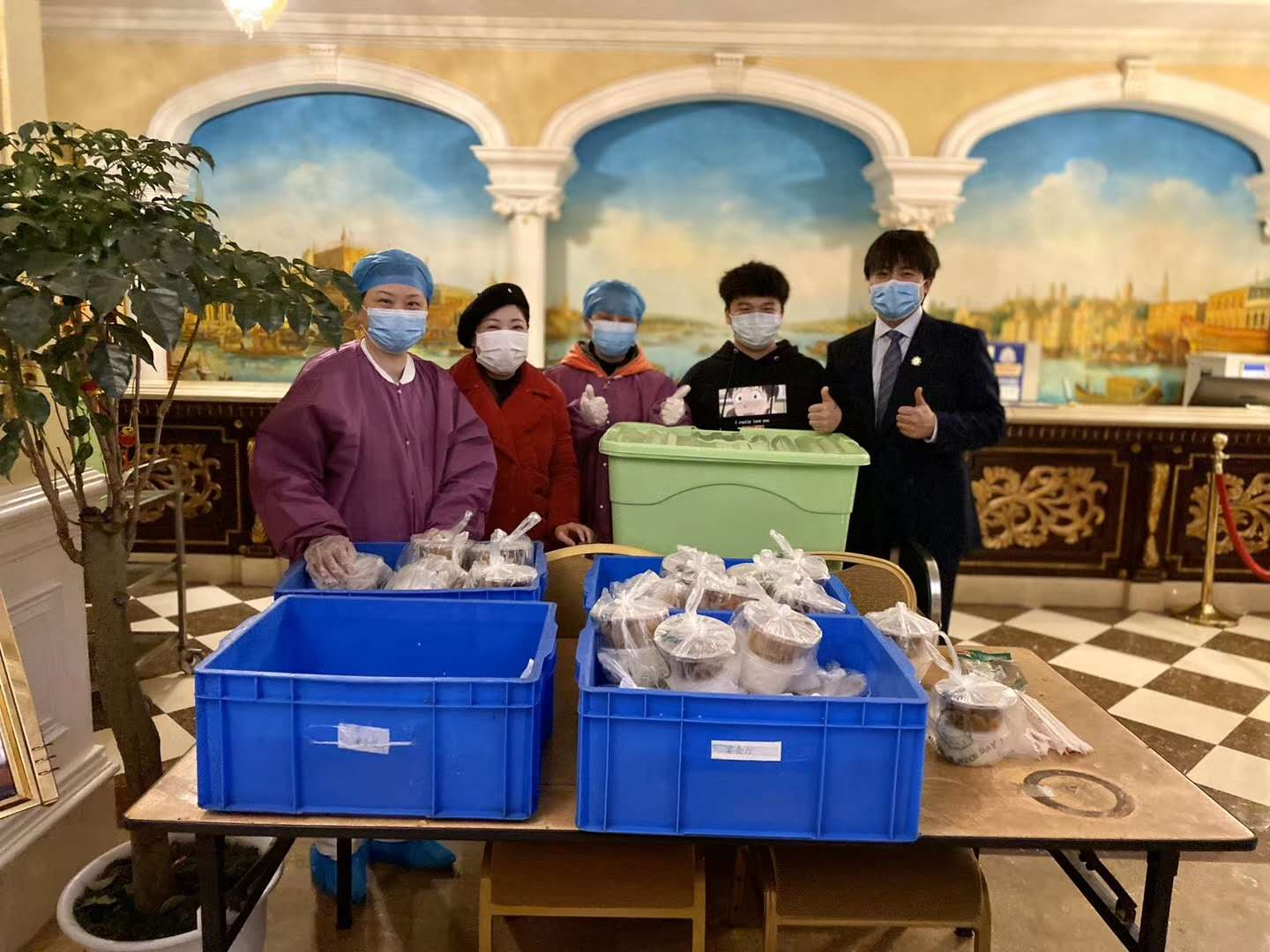 在很多逆行英雄的背后,有很多人们在默默地付出。圣厅太子酒店从第一批江西医疗队援随开始,就给入住凤凰酒店的医护人员们提供一日三餐的饮食服务,根据医疗队的饮食习惯不停地调整菜谱。7名工作人员每天要提供600人份的盒饭,早上4点左右他们就需要起床忙碌,采买、摘洗、烹饪、送餐,每餐接近200人,有他们在背后默默地付出,能够让援随医疗队员们更好的帮助我们抗击疫情,共同打赢这场疫情阻击战。
