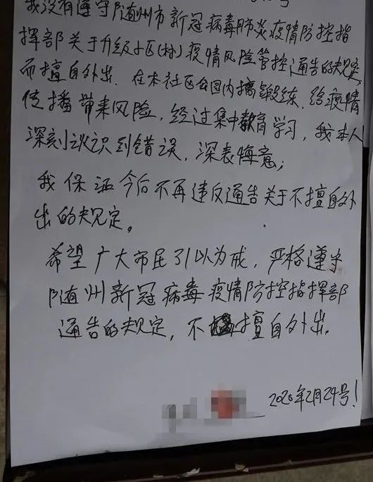 肖某,未戴口罩外出被带至学习点学习