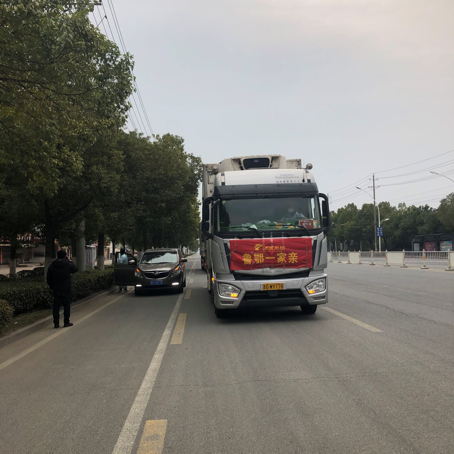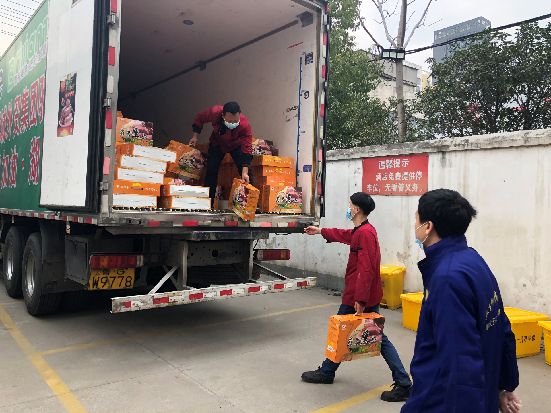 2月24日早上七点,两辆从山东出发满载爱心捐赠物资的冷链车历经十多个小时的路程顺利抵达随州。
