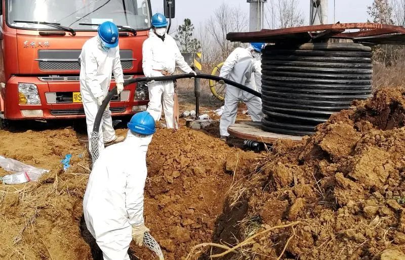 10时53分,一台250千伏安的台架式变压器,以及户外柜、电缆分接箱、低压电缆、电杆等物资全部到位。应急基干救援分队18人队员迅速集结,抵达现场。由于离医疗废物堆积的污染区最近只有60米,施工人员做好个人防护,对现场进行全面消毒后,迅速展开现场作业。