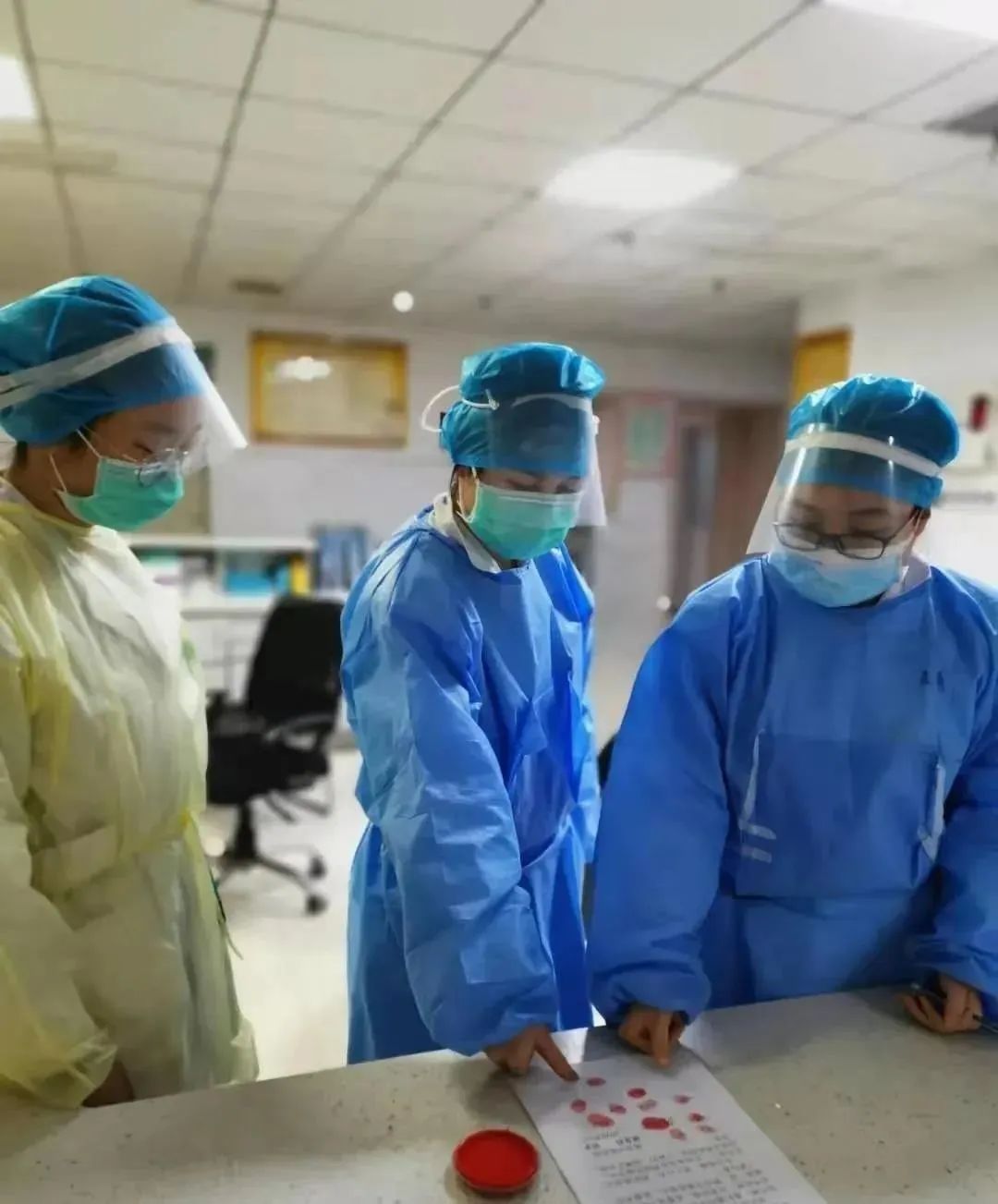 随县人民医院、中医院和洪山医院是指定的三家定点救治医院,随着疑似病例和确诊病例越来越多,这三家医院的医护人员们满负荷地运转:本来要求工作四小时就要出来换岗休息的,医护人员常常连续工作六至八个小时,防护服、隔离衣、口罩、面罩、手套……重重防护之下,汗水湿透了衣裳,他们却不敢喝水,只为了节约一套防护服、少上一次厕所。几名护士因此导致泌尿系统感染,却坚守岗位,毫无怨言。