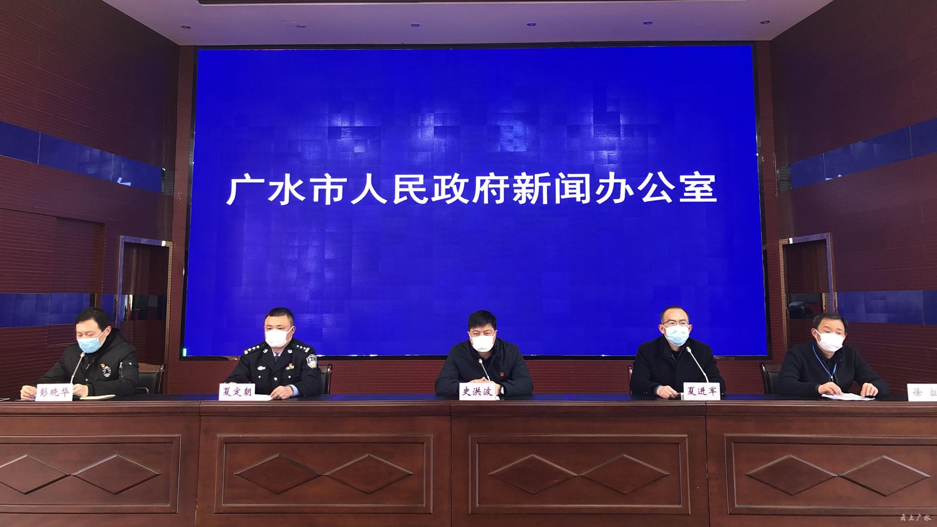 2月25日下午,广水市人民政府新闻办公室针对群众关心的社会面管控、交通管控等问题,召开了第一次新闻发布会,回应社会关切。广水副市长、市公安局局长史洪波,市委政法委常务副书记夏进军,市公安局政委夏定朝,应山街道党工委书记徐屾,分别就上述问题做出的具体安排和所采取的工作举措做了介绍。新闻发布会由广水市委宣传部副部长彭晓华主持。