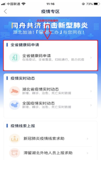 进入之后进入到疫情专区,点击下方的【全省健康码申请】即可开始操作。
