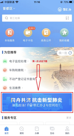 进入主界面,点击下方的【同舟共济 抗击新型肺炎】一图;