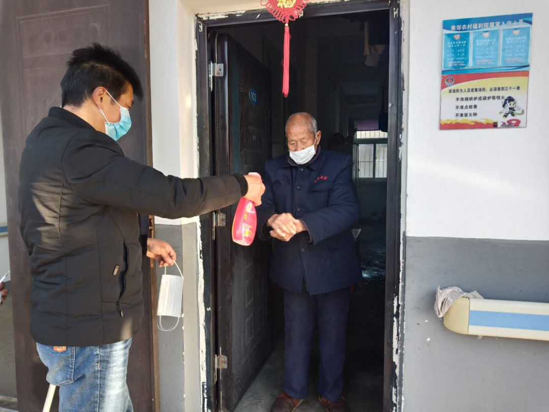 疫情发生后,南郊办事处迅速行动,对辖区1个农村福利院和6个社会养老院实行全封闭式管理,24小时值班值守,为养老院配齐口罩、消毒液等防控物资,对工作人员进行防疫知识培训,积极做好疫情防范和应对工作,全力保障老年人的生命健康安全。