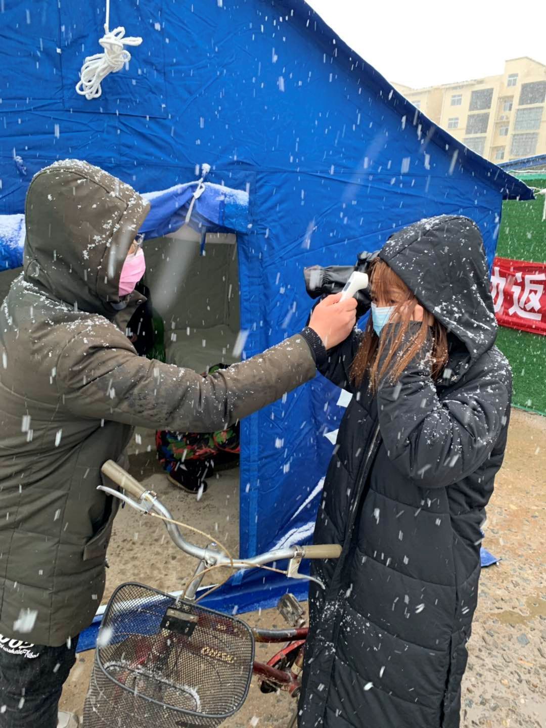 简易的帐篷旁,宣传、劝返、出入证登记、体温检测……周家安忙得不亦乐乎:“天气虽然寒冷,但想到能为抗疫工作做出自己的一点贡献,内心是温暖的。”