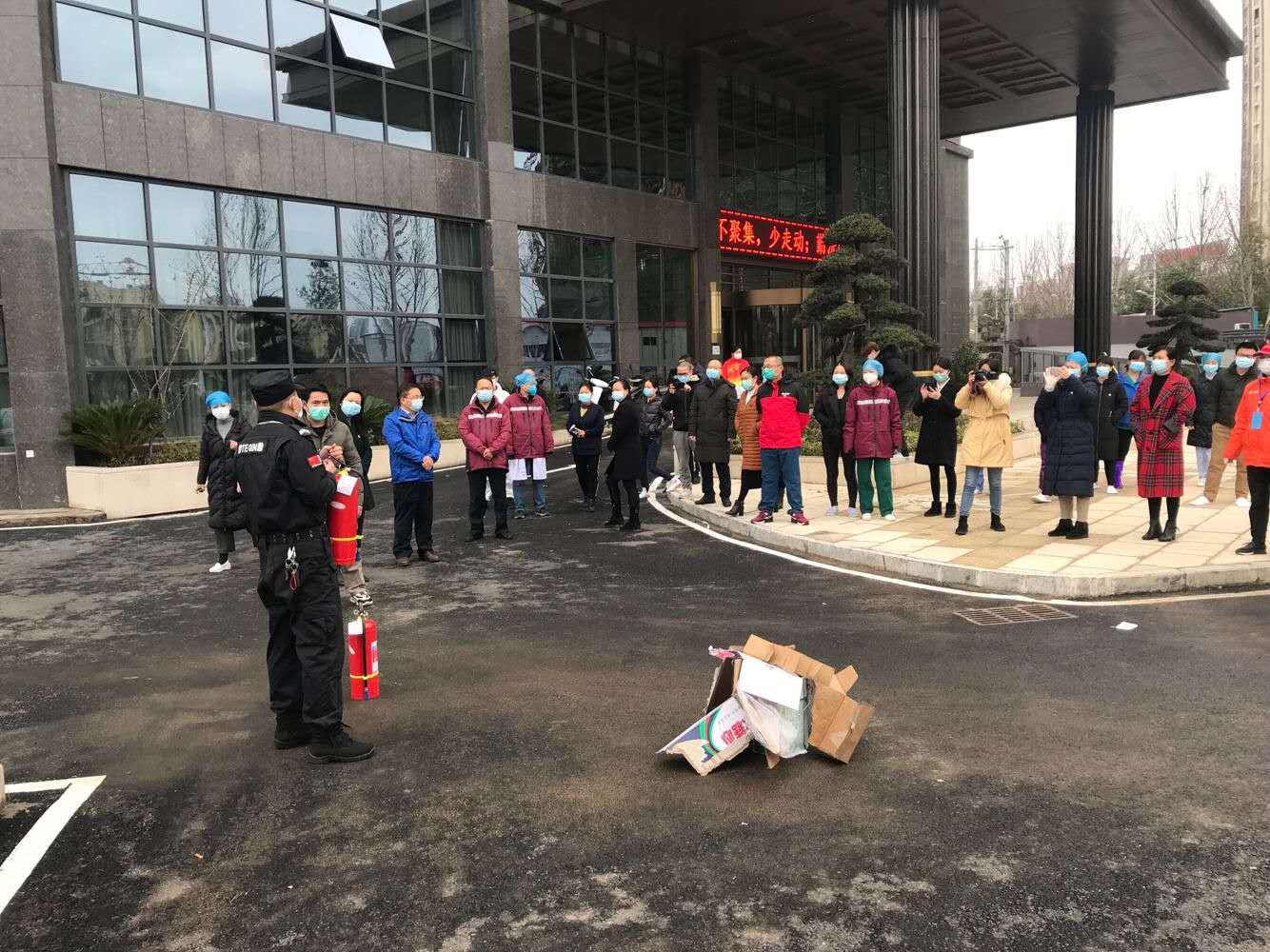 为确保江西医疗队人员安全,增强医务人员消防安全意识,提高医务人员对居住地火灾的应急扑救处置能力, 2月28日下午,曾都医院与江西支援队联合在浙东楚越宾馆空旷地上举行了一场消防实战演练。