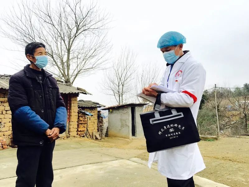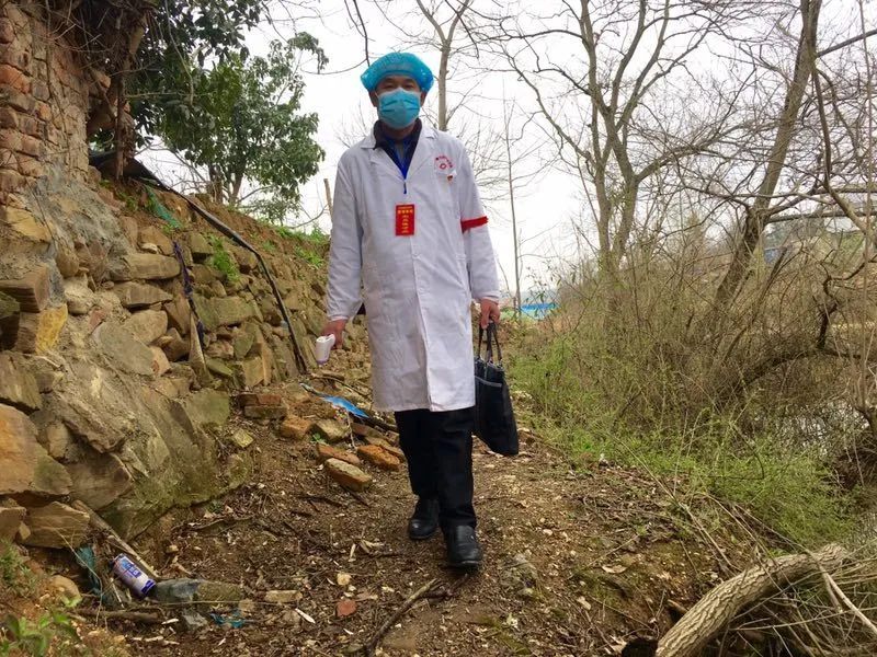 每天清晨,在何店镇天星村,人们总能看见一个身影穿梭在泥泞的田埂上,他身穿白大褂,肩背医药箱,默默地为村里疫情防控工作忙碌着,他是何店镇天星村村医鲁由柱。