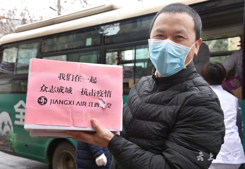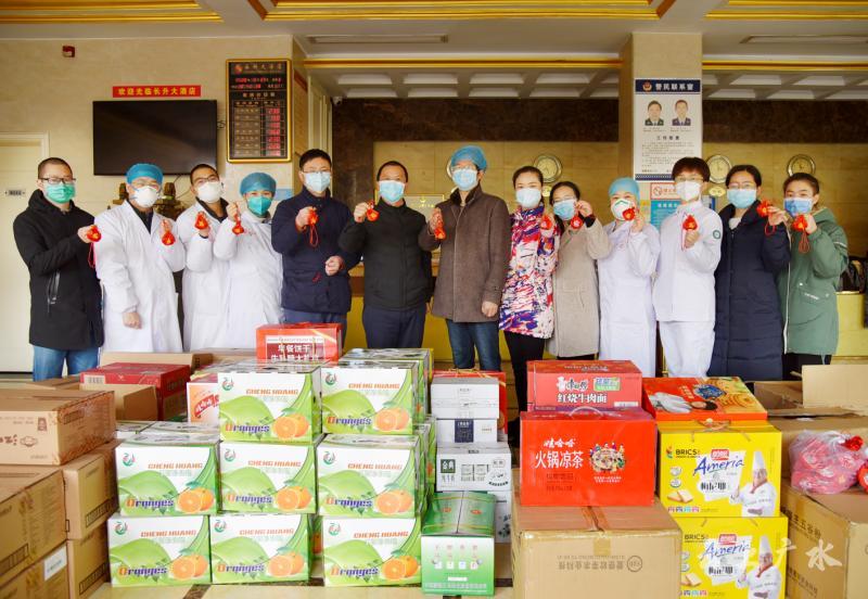 2月29日,江西援广医疗队领队陈懿建一行,将江西老家人民的慰问食品送到并肩抗疫医护人员的驻地宾馆,与广水医护同行共同分享家乡的味道。