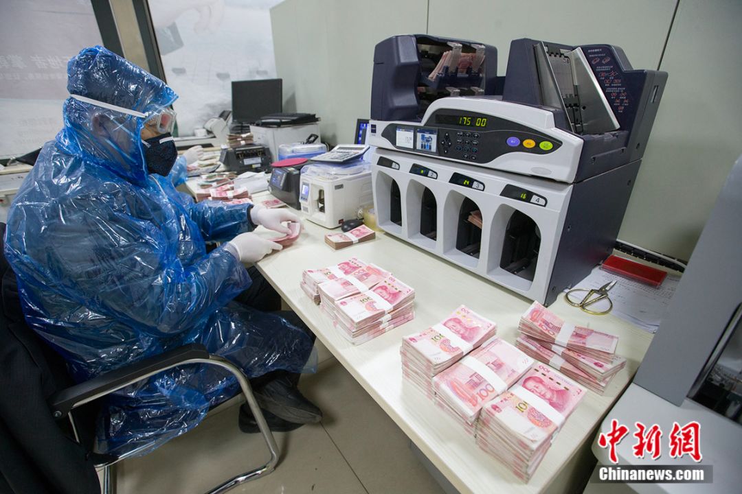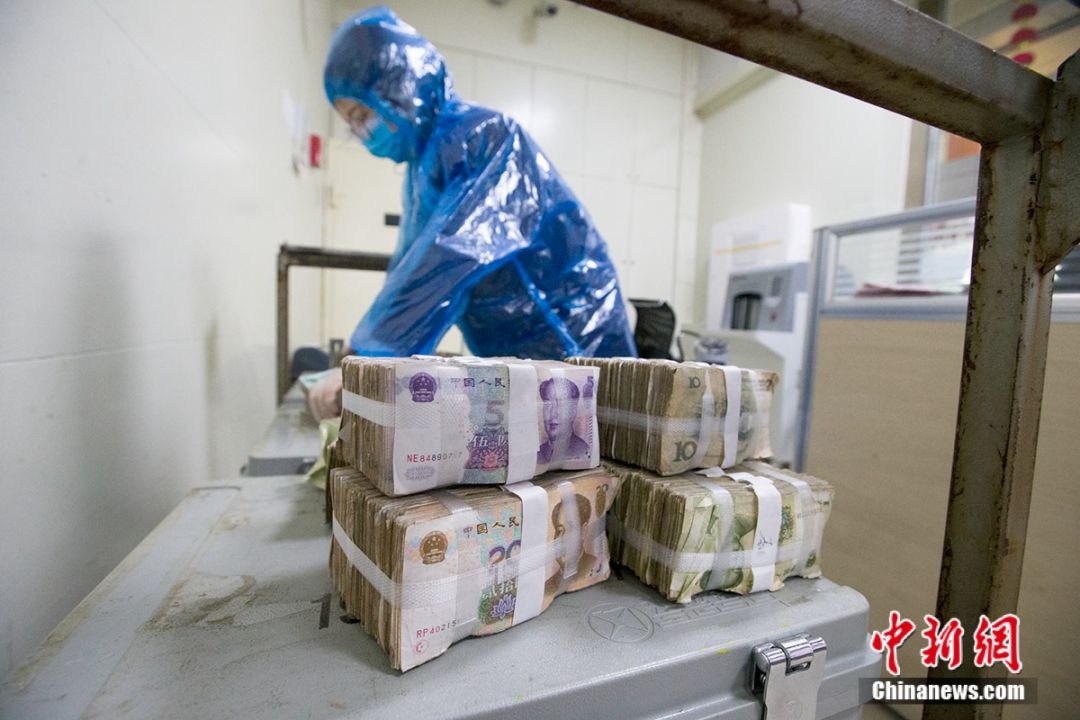 山西太原中国农业银行工作人员对现金进行清点消毒。 张云 摄 疫区的钱会流入吗? 保证了现金回收与支出渠道的清洁安全。也有人担心新冠肺炎疫情较重地区的现金会流入。