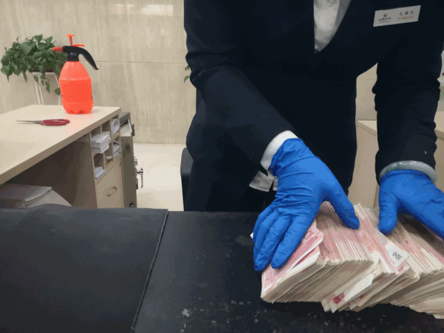 山西太原中国农业银行工作人员对现金进行清点消毒。 张云 摄 “在日常工作中,全员戴口罩上岗,传递文件、凭证或现金时必须佩戴手套,柜员在每一笔作业结束后必须对手套进行消毒。”孔婧洁说,工作人员都配置了口罩、酒精、消毒液、医用手套等防护用品,加强自身防护,保证环境安全,在特殊时期为客户提供了安全、专业的现金服务。 此外,工作人员在营业网点门口为办理业务的顾客逐个测温并进行信息登记,如果顾客较多,会对进入大厅的顾客进行限流,要求等候时人与人之间保持一定的距离,确保不会出现人员在某一区域聚集的情况。