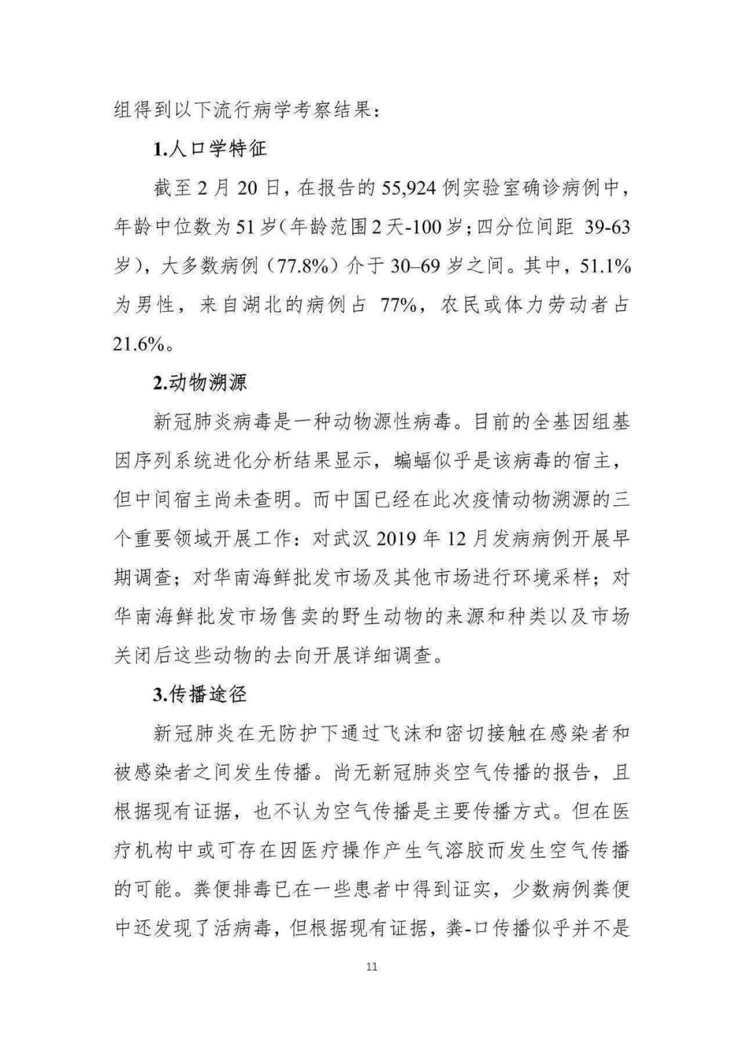 《中国-世界卫生组织新型冠状病毒肺炎(COVID-19)联合考察报告》发布。报告认为,新冠肺炎病毒是一种动物源性病毒。根据现有证据,不认为空气传播是主要传播方式。目前的全基因组基因序列系统进化分析结果显示,蝙蝠似乎是该病毒宿主,但中间宿主尚未查明。