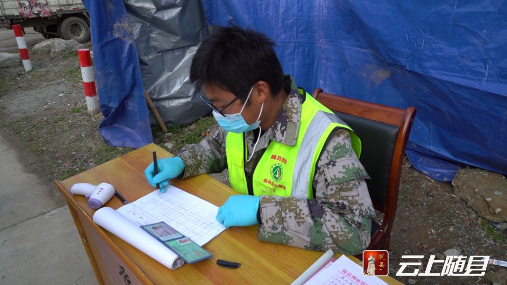 在登记过往车辆人员信息时,彭书成缩在袖口里的手吸引了记者的目光。“因为手脚不方便,我的工作比起其他同事还是轻松的。”原来,他的左手因为儿时事故导致三级伤残。彭书成说,他每天的工作就是检查每一辆通过卡口的来往车辆,对他们进行体温监测,并对来往车辆进行消毒,吃住都在卡口。