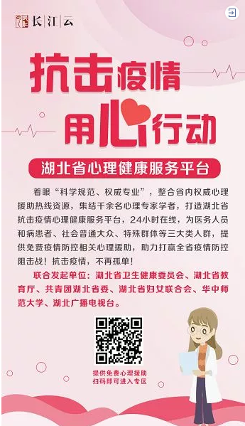 2月15日,湖北省心理健康服务平台上线,着眼“科学规范、权威专业”,整合省内权威心理援助热线资源,集结千余名心理专家学者,24小时在线,提供免费疫情防控相关心理援助,助力打赢全省疫情防控阻击战!