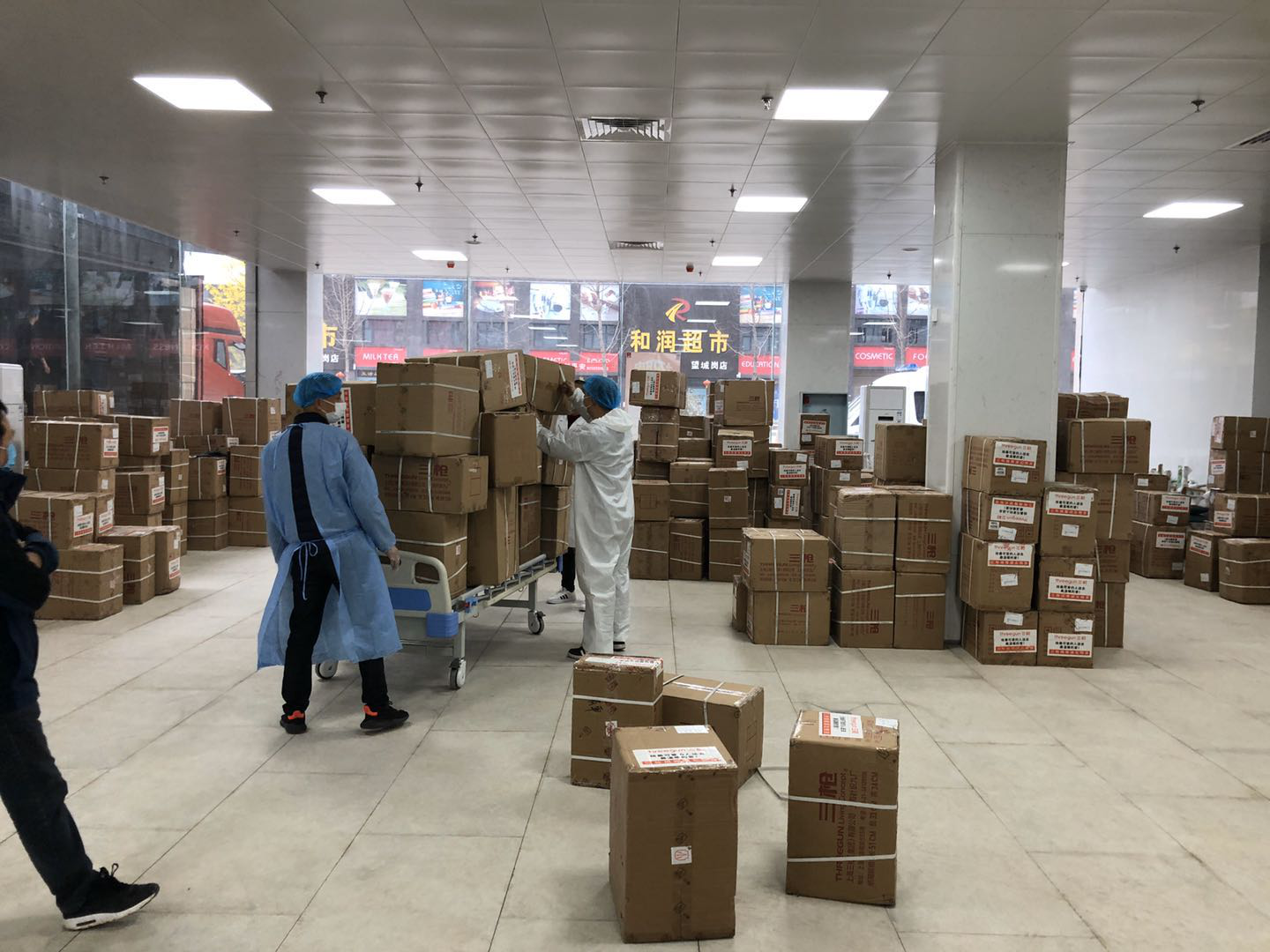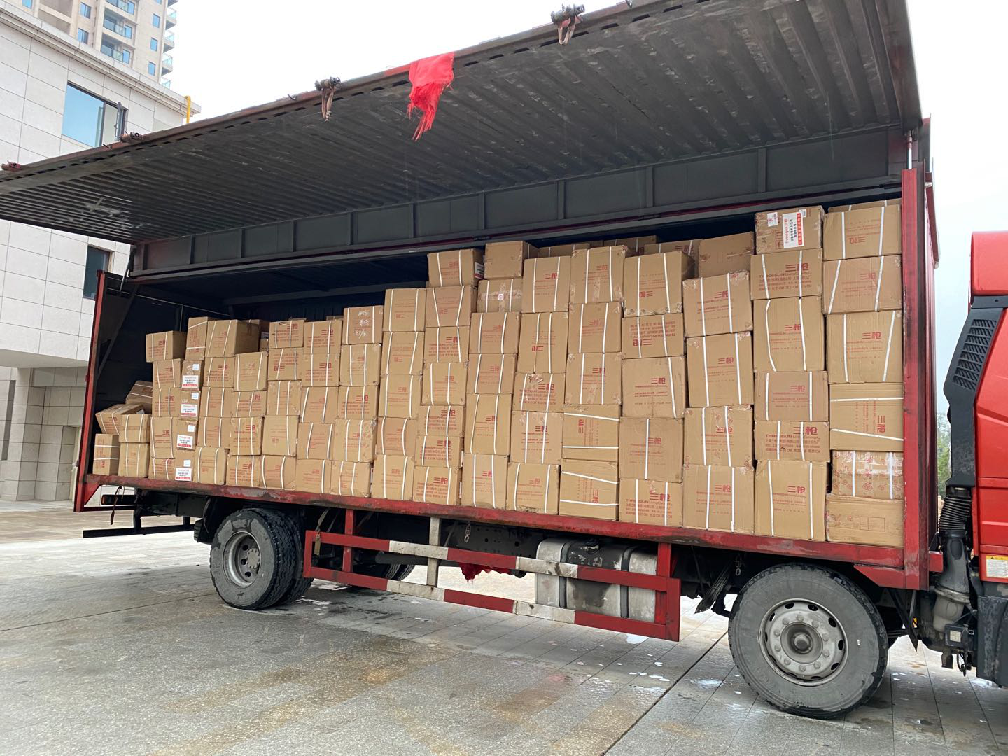 2月27日7:00,运载着上海三枪集团万余件保暖衣的卡车缓缓的停靠在随州汇仁康养中心院内,早已在此等候的随州志愿者们有条不紊的开始卸货。这批衣物将会在2天内分发给定捐随州的54家抗疫单位,其中22家单位在当天领取完毕,余下物资会以最快的速度分发到一线医护工作人员手中。