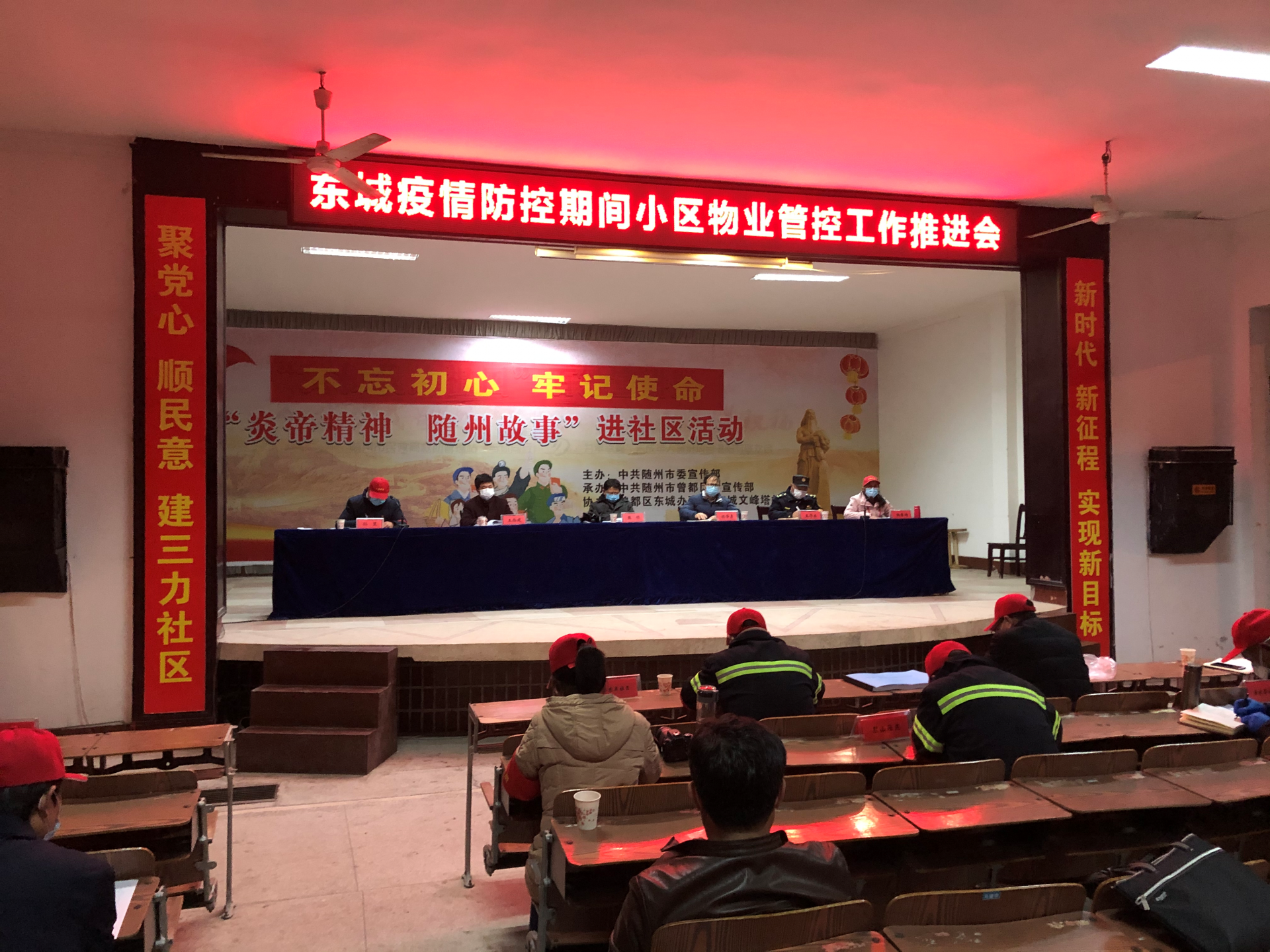 3月2日,东城办事处召开疫情防控期间小区物业管控工作推进会,组织办事专班人员、辖区46个物业公司法人代表、各社区书记、分管同志参加,市领导熊桢、胡学勇、王伦建、王华奎等参会,并作重要讲话。进一步强化压实物业小区封闭管理相关措施,再擂战鼓、再鼓劲,坚决打赢疫情防控阻击战。