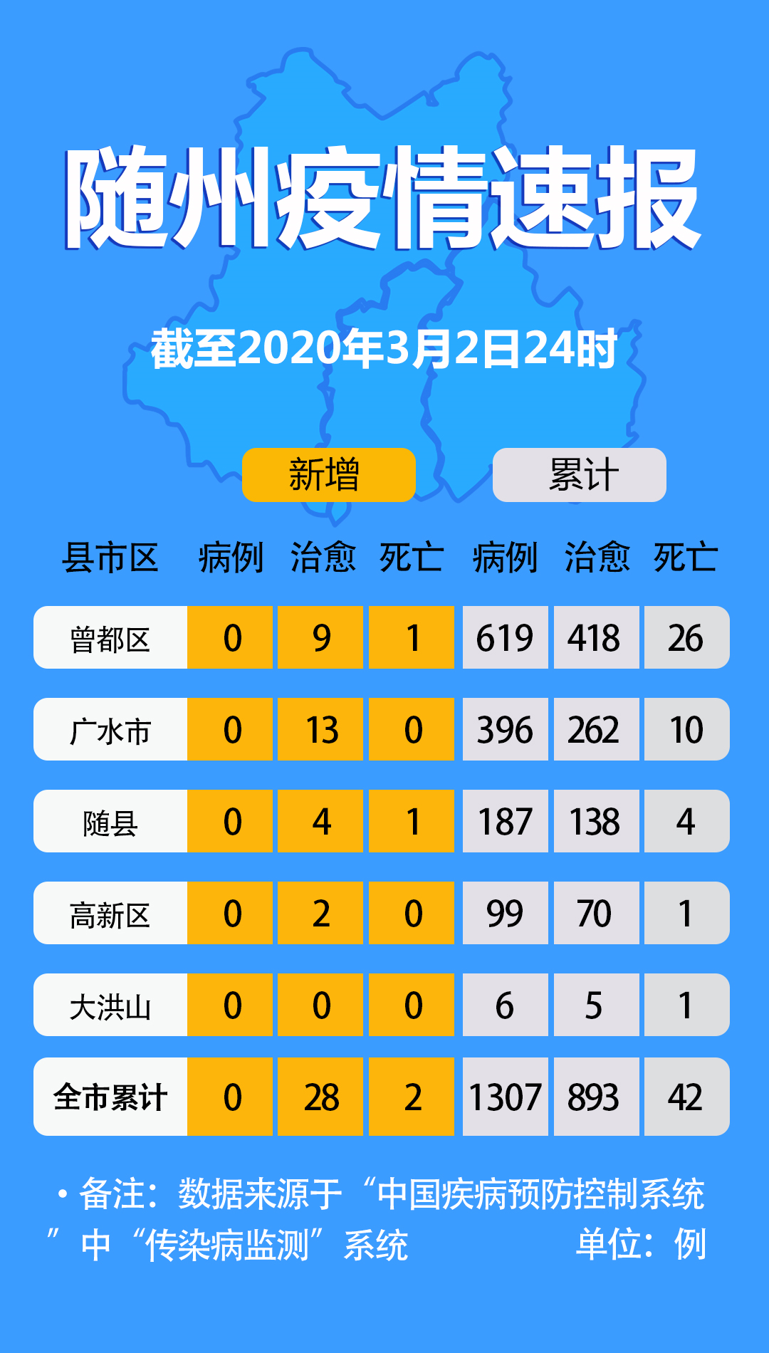 速报!3月2日随州新增0例,累计病例1307例,累计死亡42例