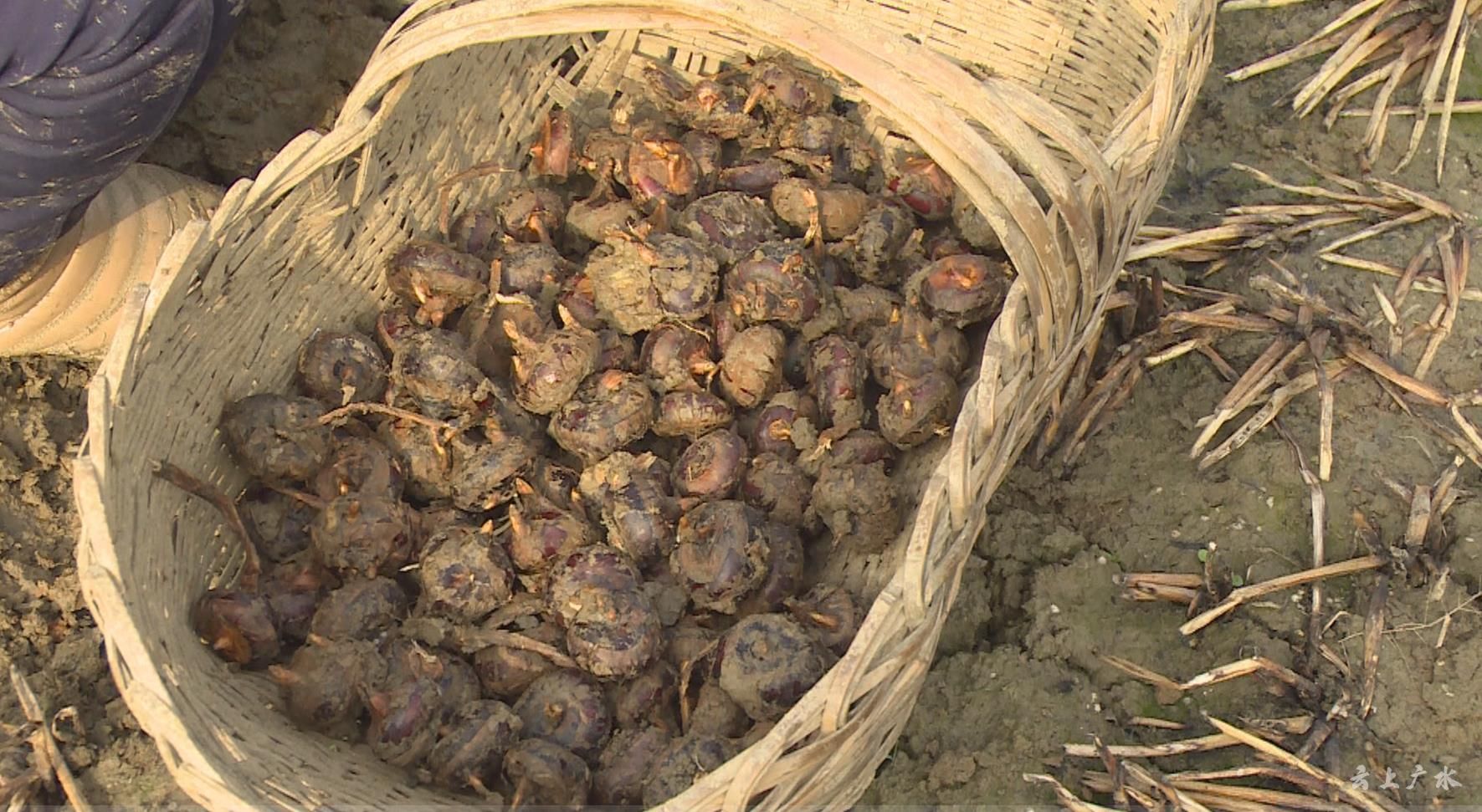 目前我们地里荸荠还有100万斤的产量在土里面,如果不搞出来的话,我们的收入成本都搞不回来。