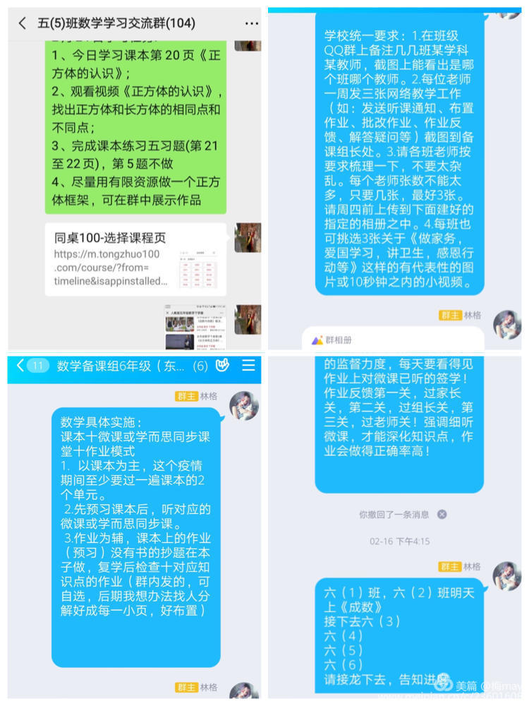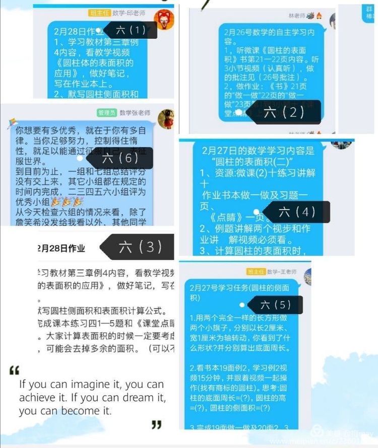 四是要密切关注老师在班级群里发布的学习任务。通过班级群,你可以随时向老师提问请教。