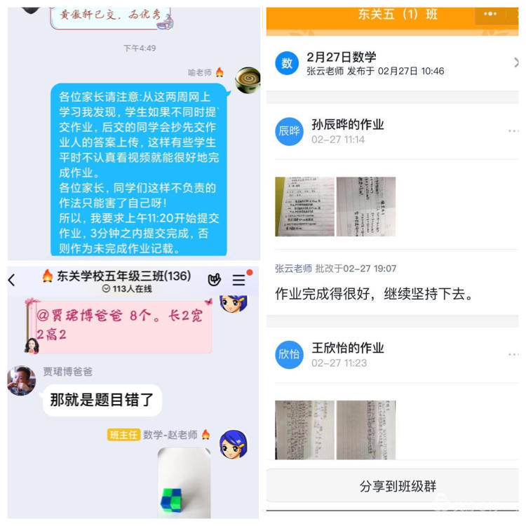 所有的老师隔空守候孩子,和平常上课一样,候课,解疑……手机、电脑,钉钉、微信、数字教材……使出了浑身解数。累并快乐着,这是东关人共有的心理常态。