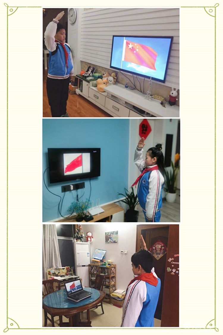 学校紧跟社会时事,在团区委的号召和组织下,东关全体少先队员们通过网络,聚集在一起,举行了庄严的升旗仪式!这次升旗仪式,队员们虽然都在家里参加,但仪式感十足。他们身着校服、佩戴着鲜艳的红领巾,仪表整洁。看着课件里的五星红旗,他们高举起右手,向奋战在一线的最美逆行者们致敬,为我们伟大的祖国祈福!