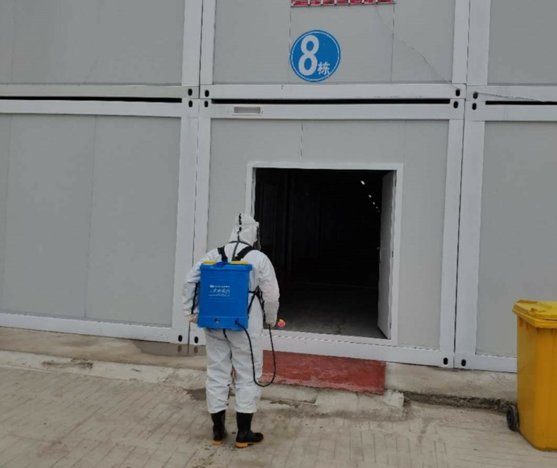 当日,广水市消防救援大队执勤突击队开始对广水市健康中心8号舱、9号舱(隔离区)及生活区进行覆盖消杀和防火巡查。非常时期,执勤突击队除了健康中心防、灭火工作外,还主动承担院内消杀工作。