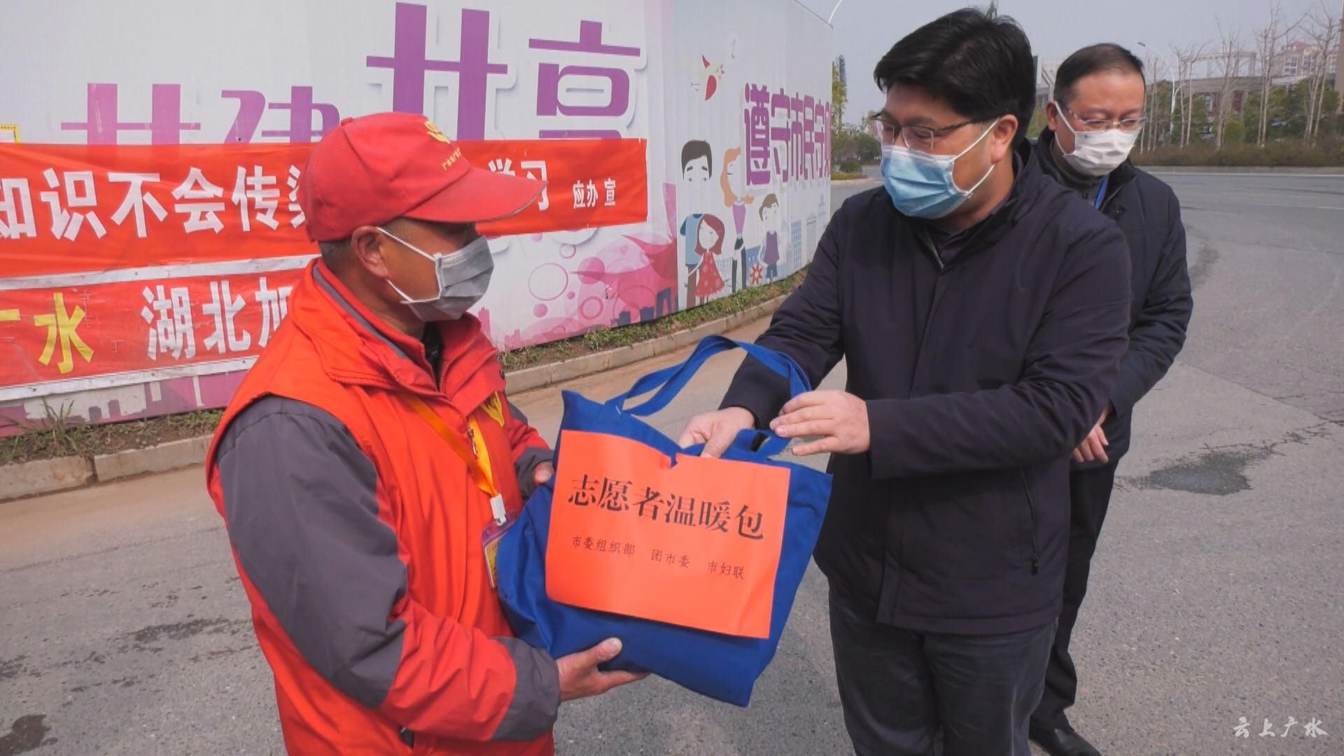 3月5日,学习雷锋纪念日。广水市委书记黄继军深入部分疫情防控点,走访慰问奋战在疫情防控一线的志愿者,对他们在疫情防控中起到的积极作用给予肯定,并为志愿者发放了“志愿者温暖包”。