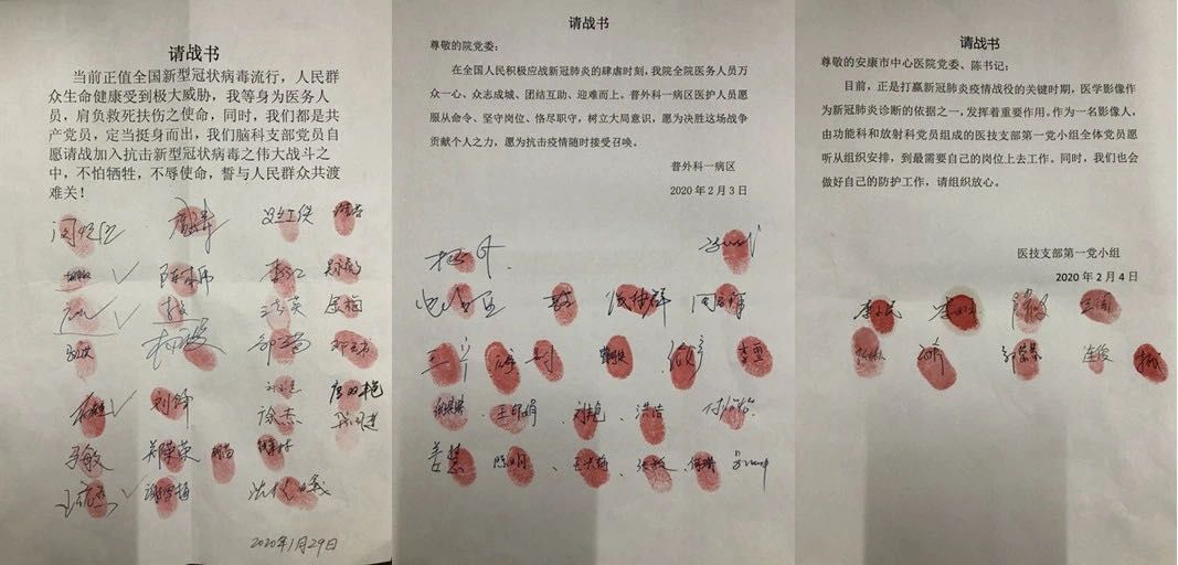 安康市中心医院医护人员请战书。图据安康市中心医院微信公众号。