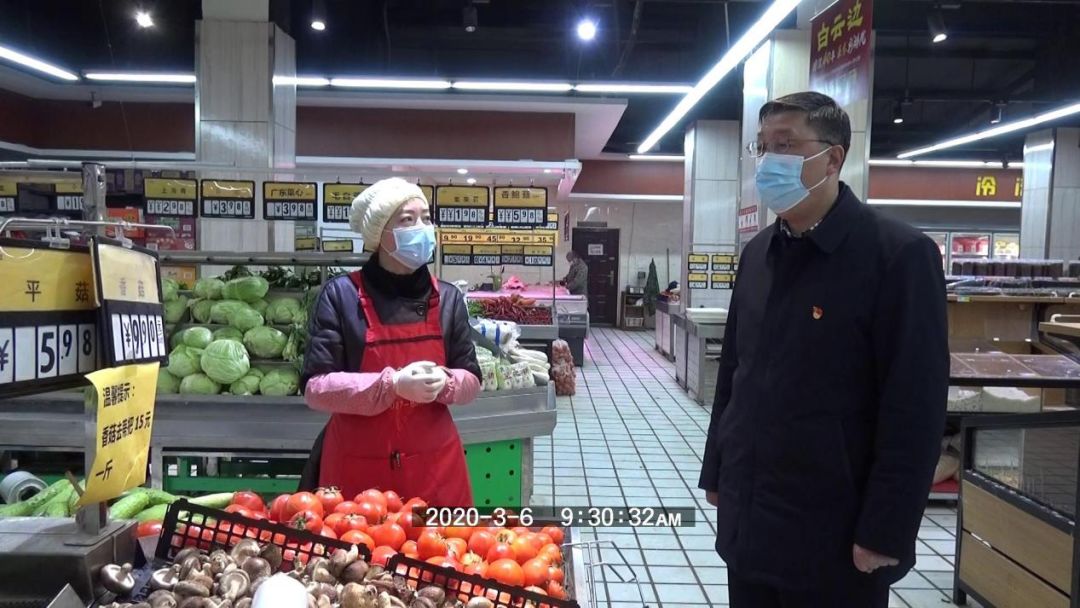 在厉山镇神农购物广场,陈兴旺一行实地查看了超市内蔬菜、米面油、肉类等生活必需品的供应情况,就货源供给、价格等问题详细询问超市管理人员。陈兴旺要求,超市经营者必须通过正规渠道进货,在保证货源充足供应和质量的前提下,严格按照物价部门的规定,保证物价稳定。超市务必要对物资配送车辆和超市内部进行规范严格消毒。