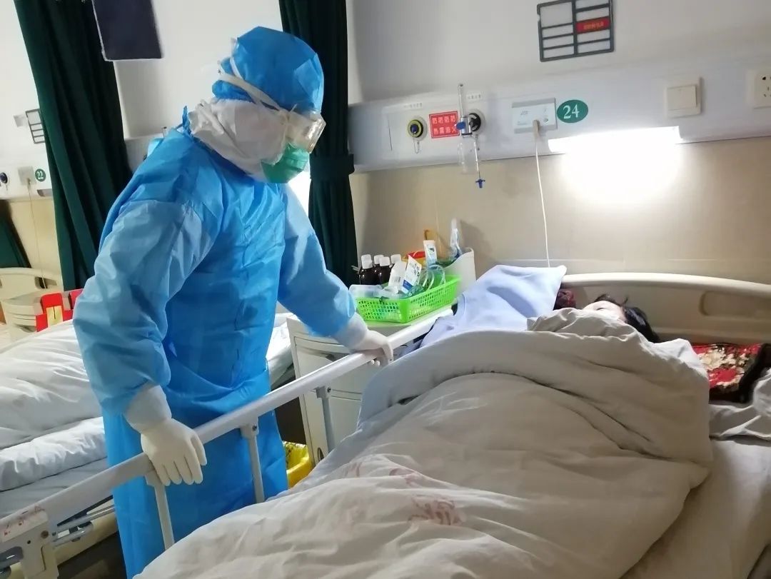 44床躺着的是位67岁的大爷。刚见到大爷的时候,他状态不是很好,我站在离他约1米远的距离都能听见他局促的喘息声。好在经过10多天的治疗,大爷的体温和各项指标终于都平稳了。有一次,大爷因为看见隔壁病房病情更严重的阿姨每次进出都有护士搀扶,心生焦虑,认为自己是被放弃的患者。我耐心解释后,大爷依旧焦虑。“江西叶仁江”我指了指防护服上的字,告诉他,“大爷,我是从江西过来,江西离这里几百公里呢,我跑不掉,更不会抛下你。明天,我亲自带您去拍CT。”听完,大爷点了点头,用手擦去眼角的泪水。