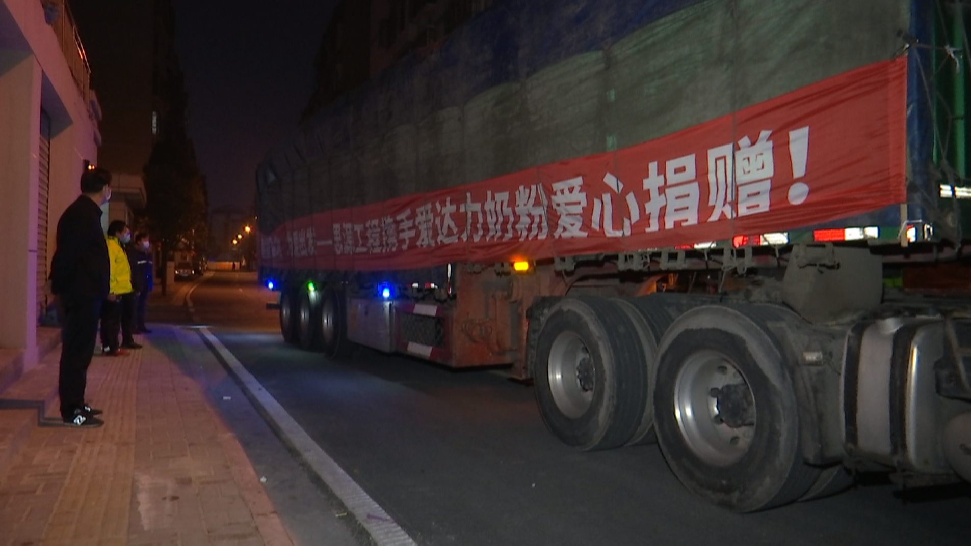 3月6号晚上九点,一辆满载着倍嘉国际和中华思源扶贫基金会捐赠物资—爱达力牌奶粉的运输车抵达随州,用于新冠肺炎定点医院医务人员和防控一线工作人员的慰问。为迅速将捐赠方的爱心传递下去,市人民政府驻京联络处立即组织人员将物资分送,当晚11:30,发放到5家定点医院,3月7号上午全部发放完毕。