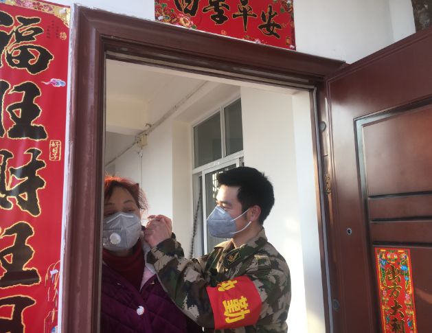 他不仅仅是一名志愿者,而是一名社区的医务人员,他每天挨家挨户深入社区家中,为居民测量体温,并及时登记。