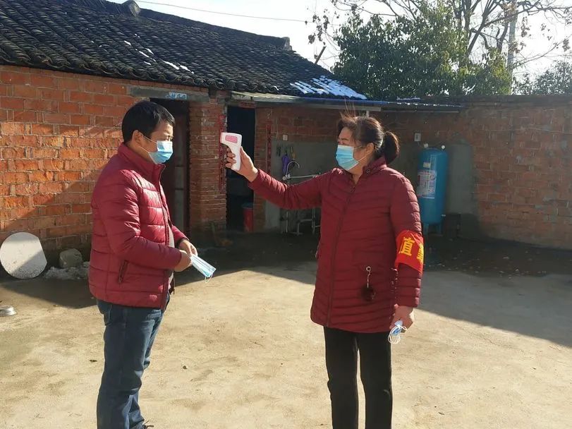 谢红梅, 41岁,面对来势汹汹的肺炎疫情,谢红梅义不容辞,坚守在农村抗疫一线。从1月27日起,谢红梅和其他党员干部除了在卡点轮流值守,每天还要挨家挨户上门摸排,把控和掌握每个村民的健康状况,同时把疫情防控的相关政策宣传到位,即使下雪、下雨也阻拦不住他们拉网式“敲门”的步伐。