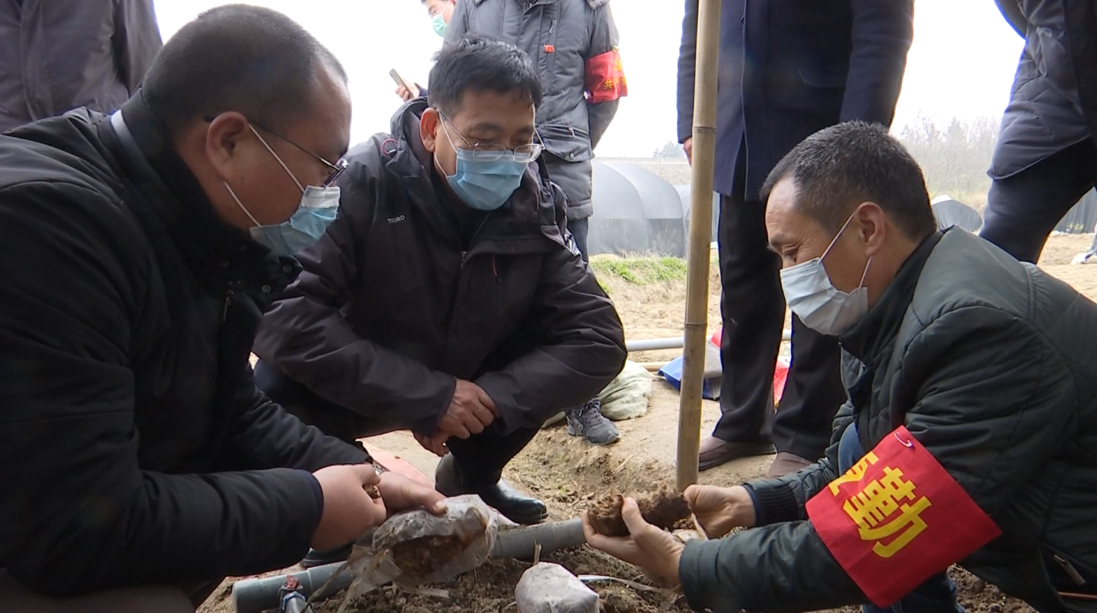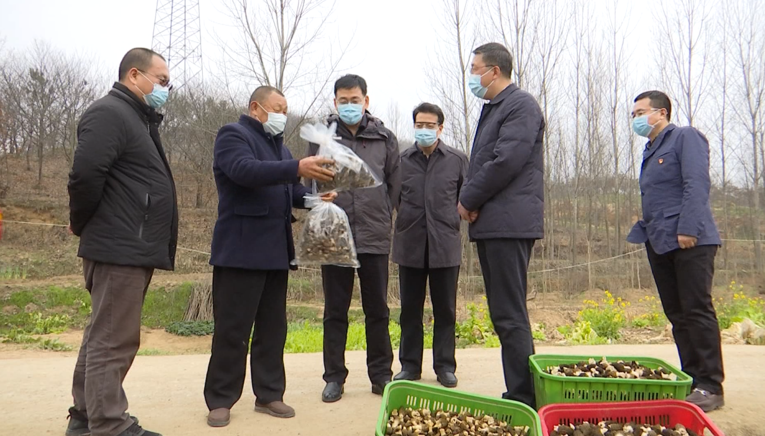 在草店镇,陈瑞峰察看了金锣山村扶贫产业——羊肚菌种植示范基地的疫情防控及生产情况。