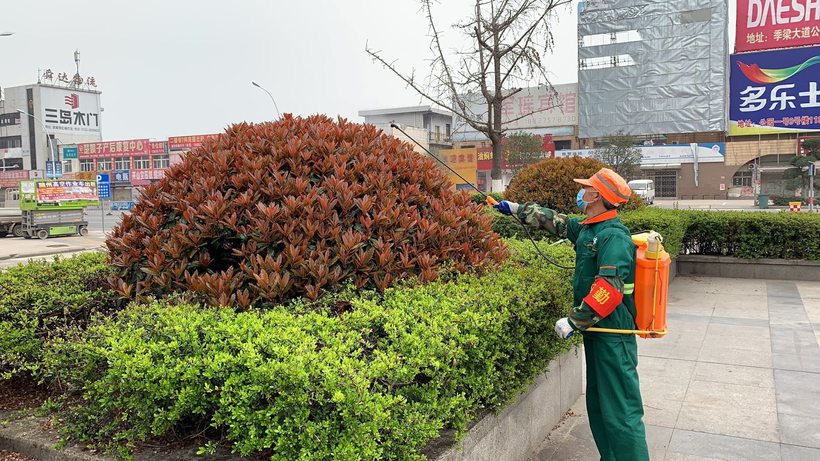 目前,市绿化管理处绿化苗木病虫害防治、绿化带锄草等各项养护工作正在有序进行中。