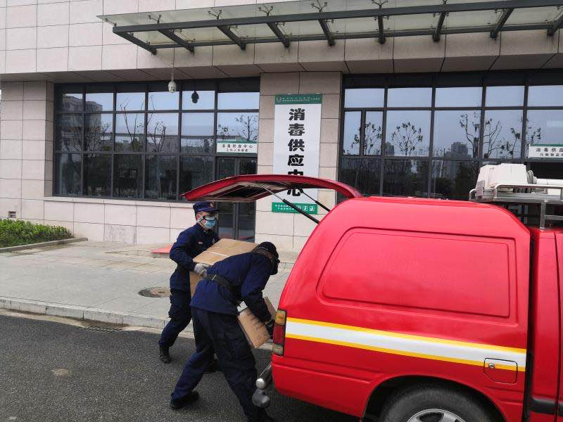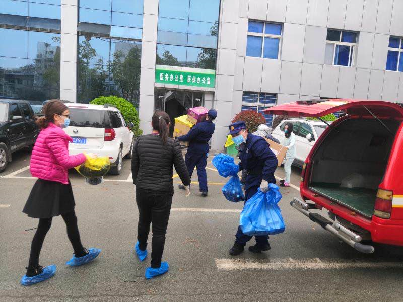 3月9日,“119党员突击队”1车3人,佩戴防护装备,从随州市艳阳天隔离点护送两名医务人员到中心医院(龙门院区)。刚下车,指挥员看到一名医务人员准备骑电动车送两大箱消毒物资出门。此时正下着小雨,电动车无法装下物资。经询问,该医务人员准备前往中心医院文帝院区。指挥员留下了联系电话,主动帮忙将两箱物资送到目的地。