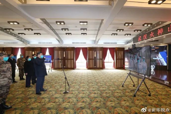习近平考察火神山医院,看望慰问患者和医务工作者。