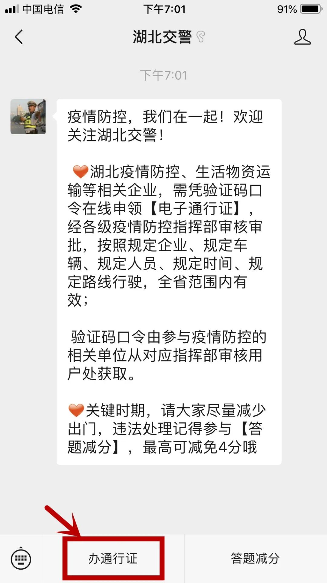 获得“绿码”后,可以在交通平台上申请车辆通行证。鼓励以员工自驾方式或用工单位“点对点”包车方式实施返程,有关车辆通行证可以通过“湖北交警”官方微信公众号按照有关规定和程序实名认证办理。
