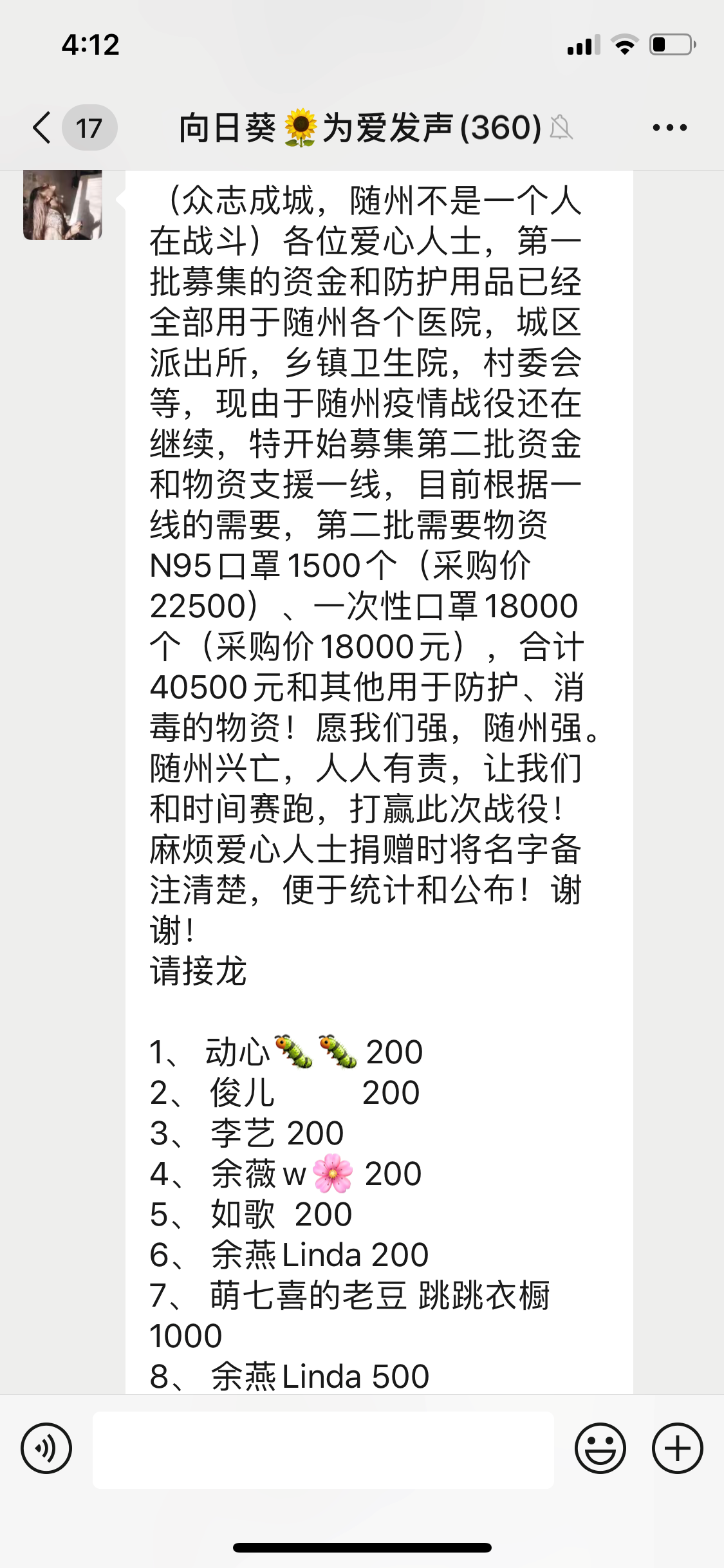 疫情防控工作开展以来,我市各单位各团体纷纷以各种方式贡献自己的爱心。在网络微信中,随州籍爱心人士跨越时间、空间的阻隔,为打赢疫情防控阻击战献一份力量。