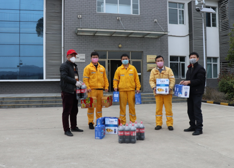 3月9日,随州市气象局志愿者给华润凤鸣风电场送去疫期的关怀,受到员工的欢迎。