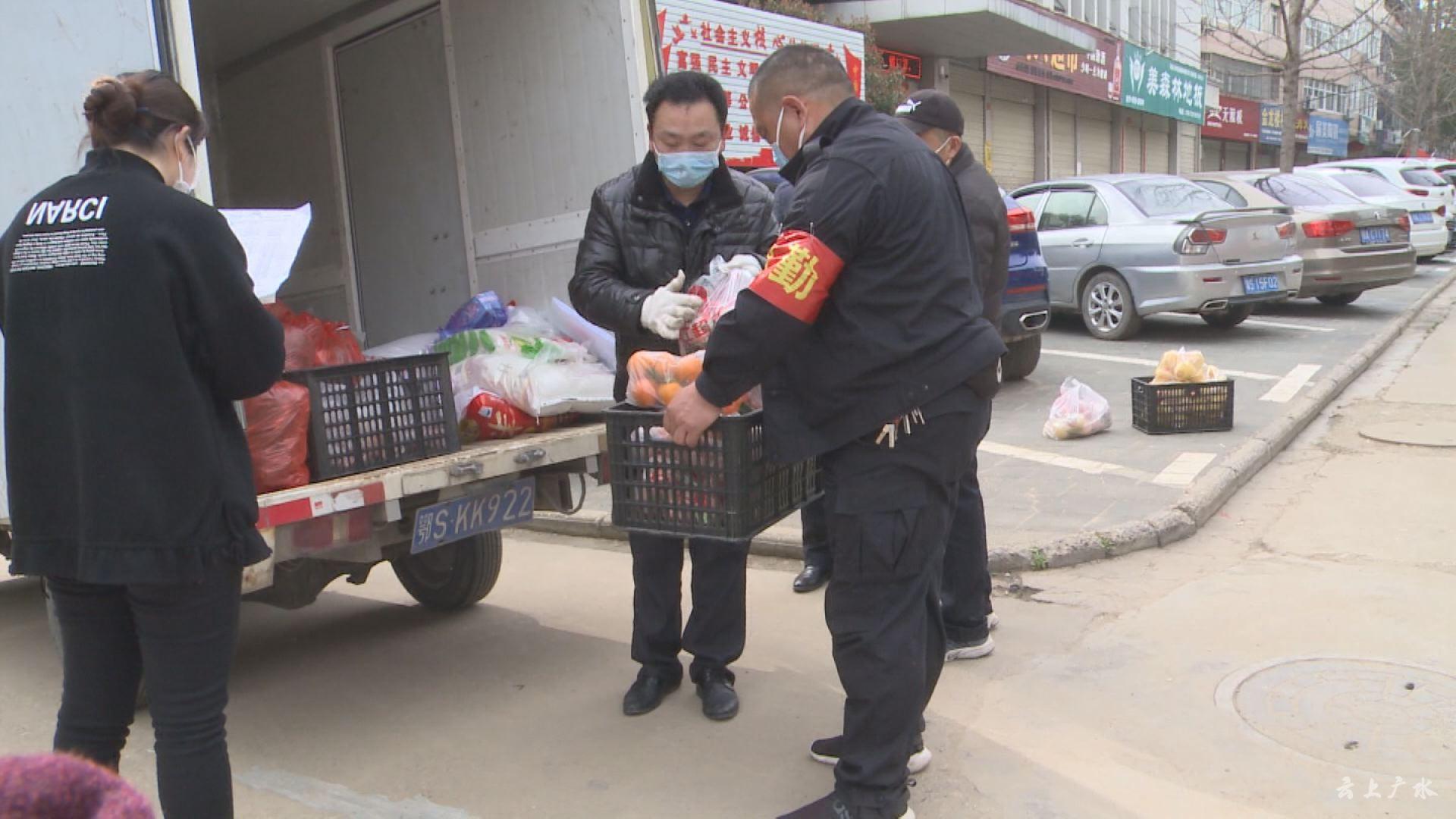 3月11号上午9点,记者来到富康社区值守点看到,值守干部在队长邹远涛的带领下,正在搬运配送的生活物资,居民们秩序井然的保持间隔,排队等待领取配送物资。