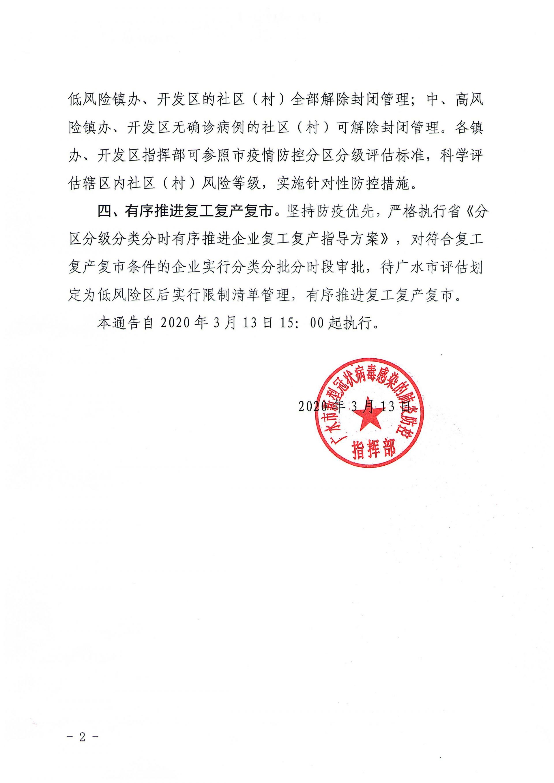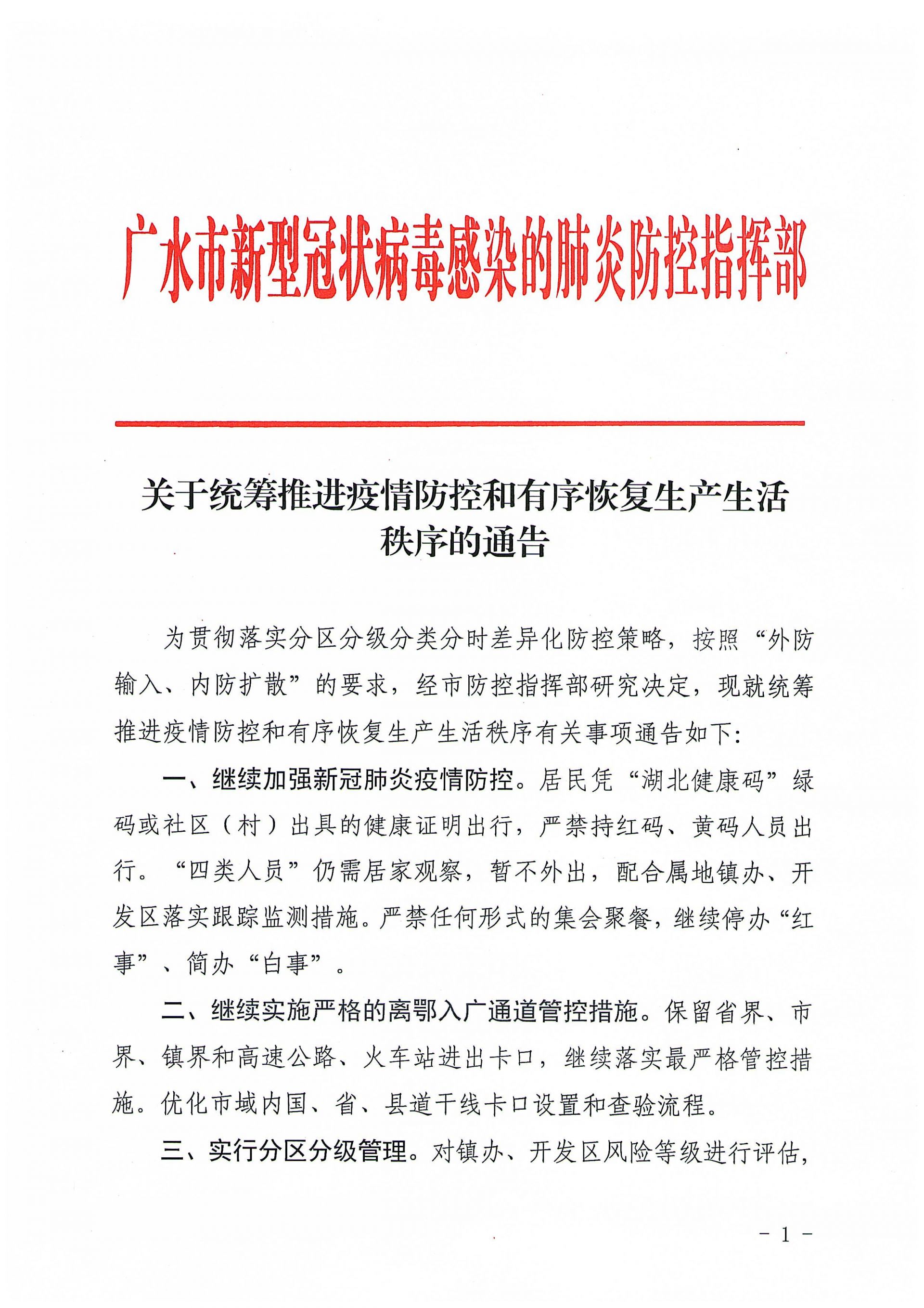 广水市关于统筹推进疫情防控和有序恢复生产生活秩序的通告