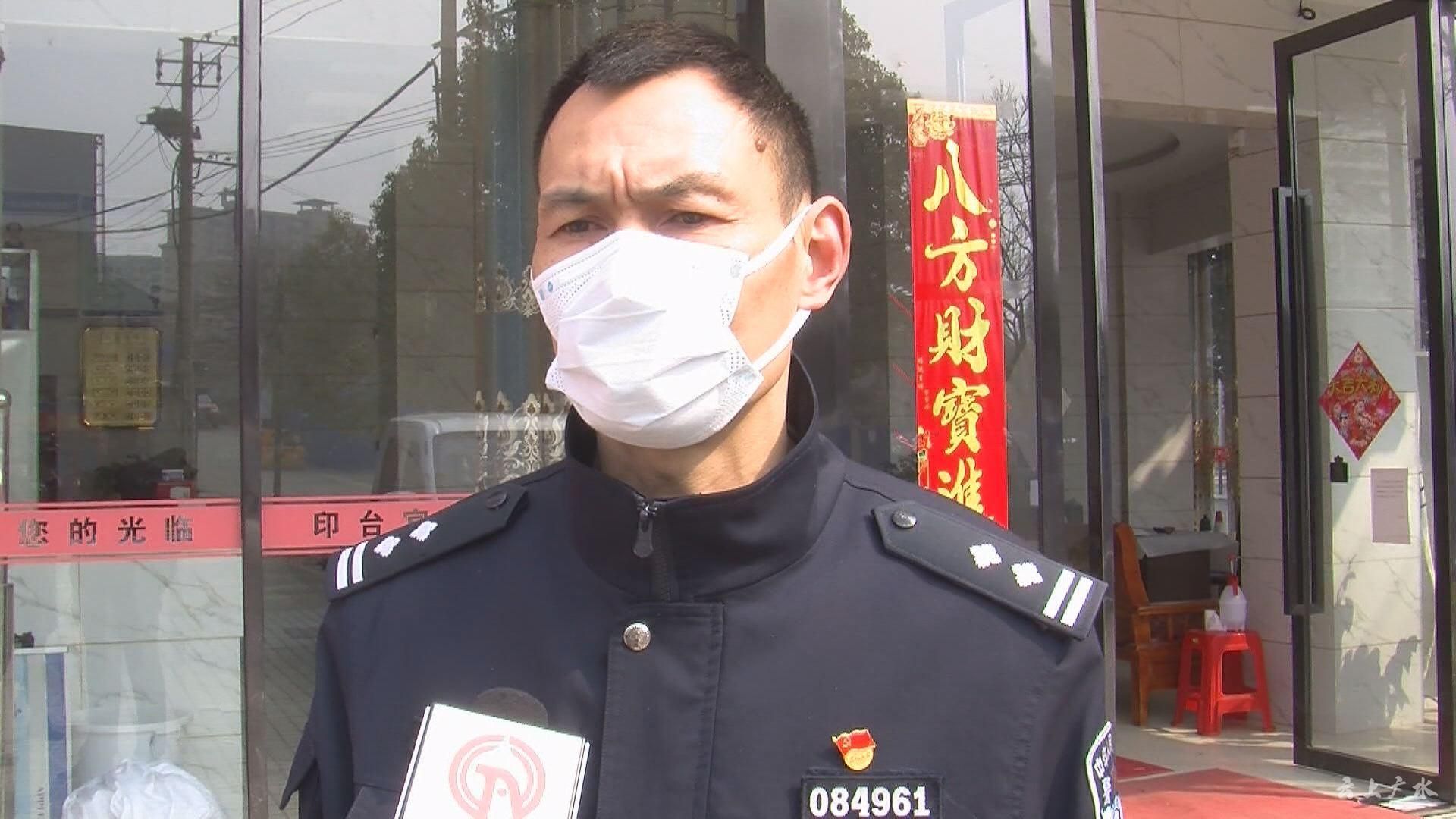 【同期声】广水市公安局应山分局民警 付志海:“习总书记到武汉来考察这个疫情防控工作的重要讲话精神,我们通过学习深刻感受到总书记的讲话特别亲切,特别有鼓舞性,使我们的全体民警在这次疫情当中受到很大的鼓舞,自疫情以来我们全体公安民警服从命令,听从指挥,在第一时间赶到抗疫一线坚守,体现出了全体民警的勇于担当,不惧危险,服务人民的大局意识,也得到了总书记的充分肯定,在以后的工作中,我们将按照总书记的要求,再接再厉、履职尽责、不厌战、不放松,为坚决打赢防疫阻击战再做贡献。”