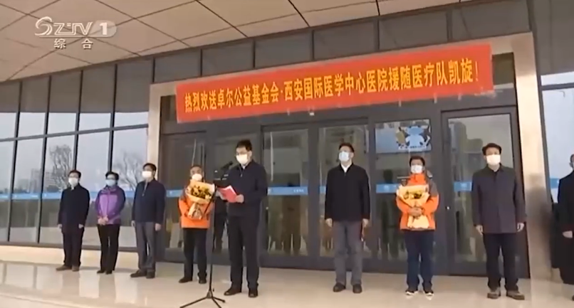 陈瑞峰代表随州市委市政府和258万随州人民,向卓尔基金会和西安国际医学中心医院援随医疗队全体专家、队员表示衷心感谢和崇高敬意。他说,危难之时见真情,在随州疫情防控最吃劲的关键阶段,卓尔公益基金会·西安国际医学中心医院援随医疗队义无反顾的坚定逆行,同随州人民风雨同舟,日夜鏖战在疫情防控第一线,托起了无数生命的希望,传递着人性光辉和社会大爱,充分展现了“敬佑生命、救死扶伤、甘于奉献、大爱无疆”的医者仁心,你们是最美的天使,是真正的英雄,是新时代最可爱的人,为保障随州人民生命安全和身体健康作出了重要贡献。经过艰苦努力,随州疫情防控形势发生积极向好变化,但不获全胜决不轻言成功。我们坚信,有以习近平同志为核心的党中央坚强领导,有中国特色社会主义制度优势,有卓尔控股集团和西安国际医学中心医院的大力支持,有全市人民众志成城、同舟共济,一定能够不断巩固成果、扩大战果,夺取疫情防控人民战争、总体战、阻击战的全胜完胜,一定会迎来一个繁花似锦的春天。诚挚地邀请大家常回随州,随州永远是你们的家,随州人民永远把你们当恩人、当亲人!