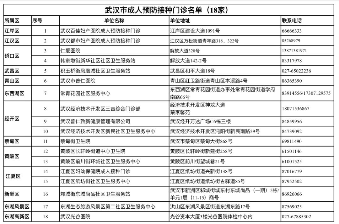 附件4:武汉市成人预防接种门诊名单(18家)
