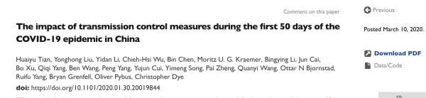 作者们认为,这份早期分析表明,在中国春节假期期间启动的传播控制(非药物)措施,包括前所未有的武汉出行禁令和一级应急响应,推迟了中国境内COVID-19疫情的增长,并限制了其规模。