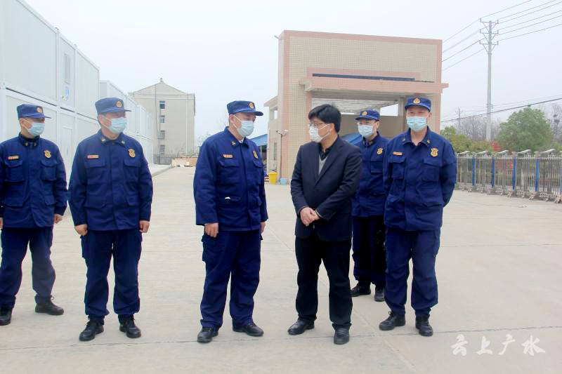 督导期间,刘明珠前往广水市健康中心看望慰问前置备勤的“119”党员突击队员,检查突击队车辆、防护装备、消毒物品配备情况;实地查看了“一标两小”新消防站建设工作;听取大队关于疫情防控工作的情况汇报,传达了各级领导对疫情防控工作的要求。