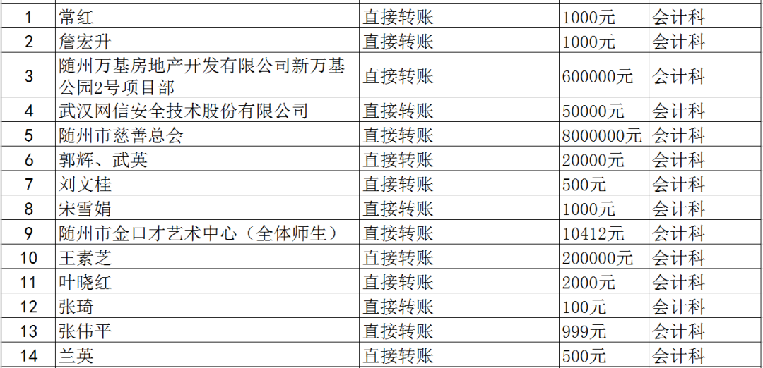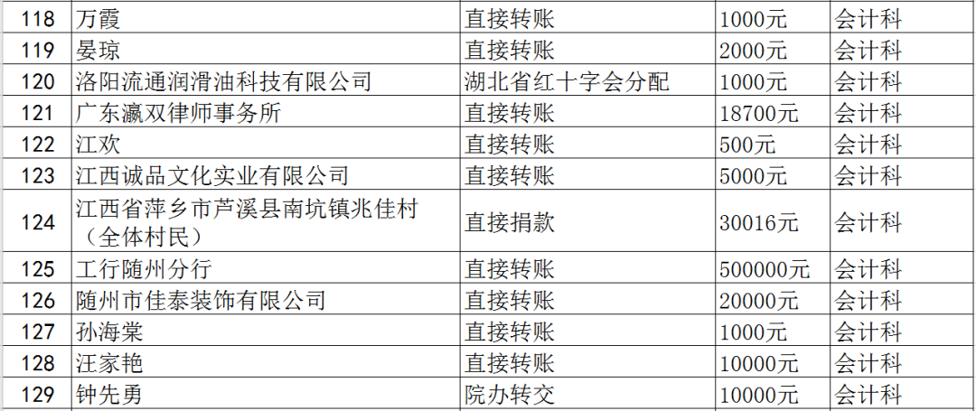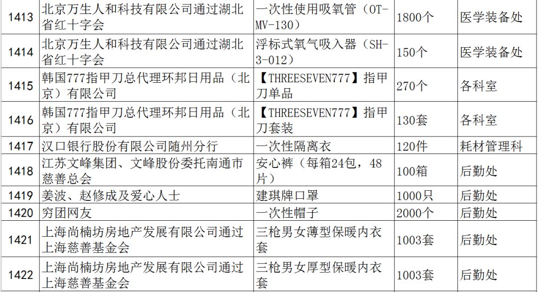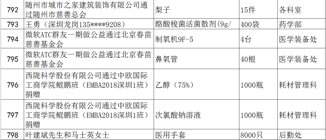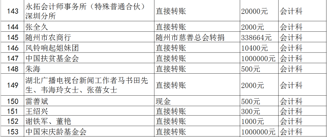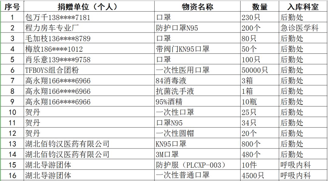 一、本公示包含2月14日所发布公示(一)中的捐赠信息,且排序不分先后。